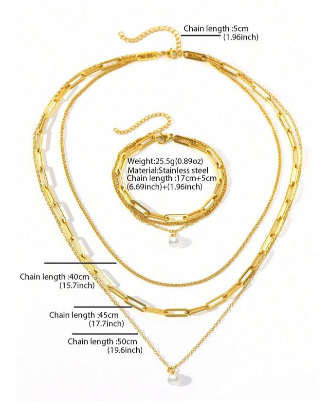 Sparkling Pearl Layered Bracelet & Necklace Set