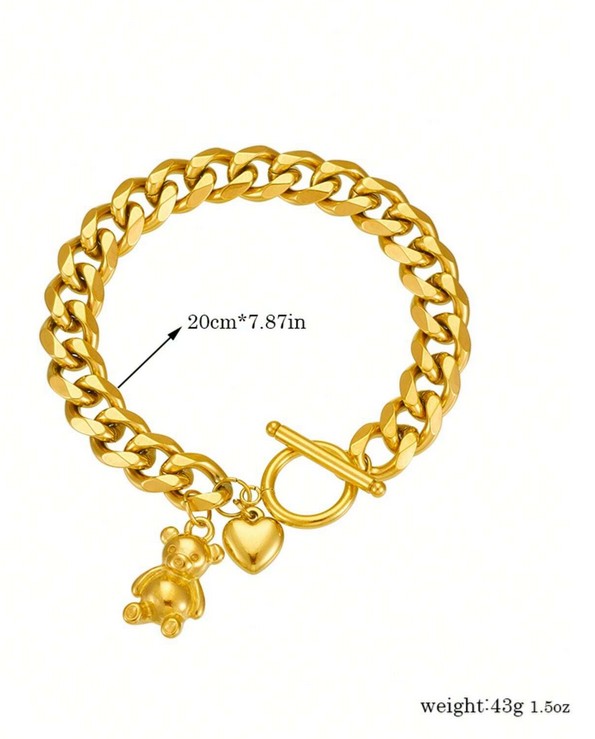 Sparkling Chunky Chain Teddy Bear Pendant Bracelet.