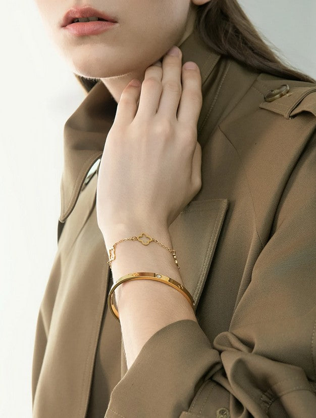 Sparkling Clover Element & Crystal Glass Bracelet.