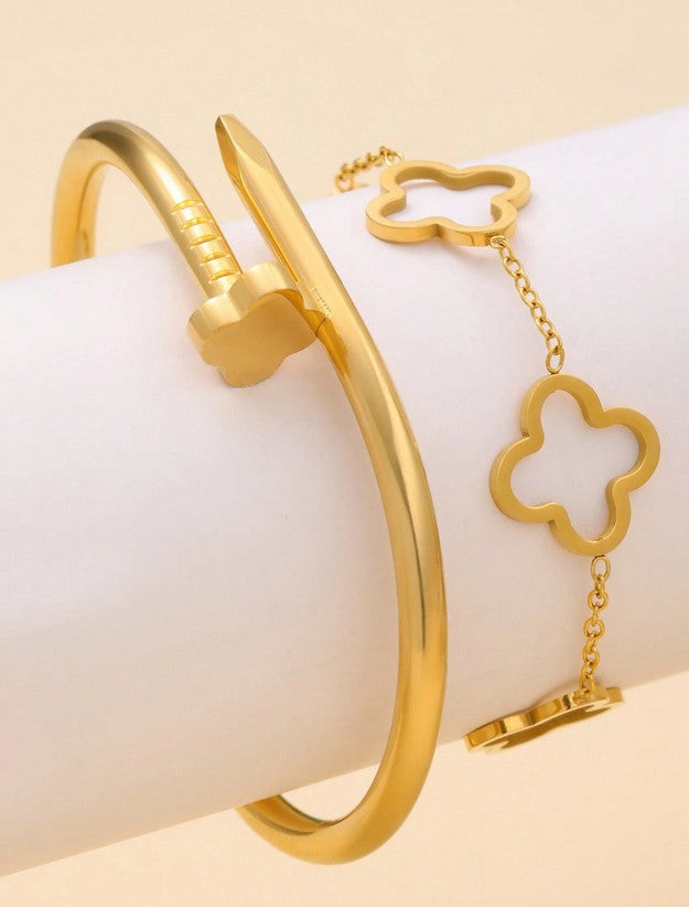 Sparkling Clover Rivet Bracelet & Bangle Set