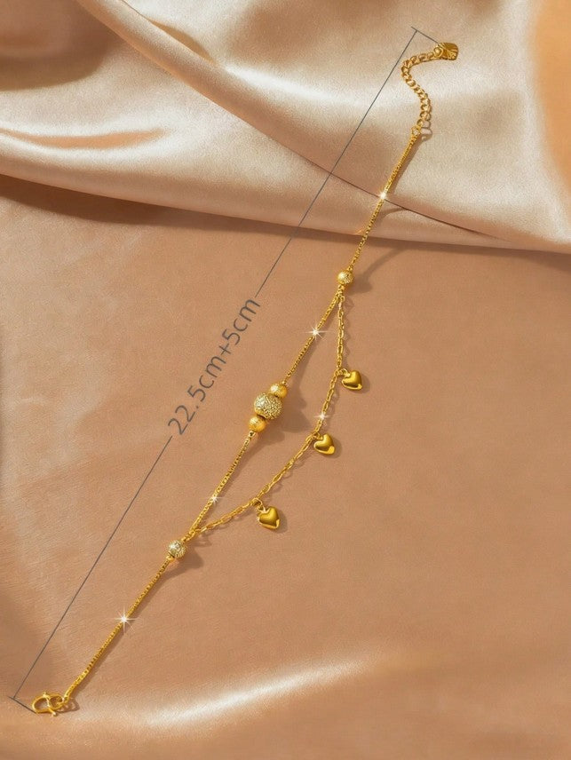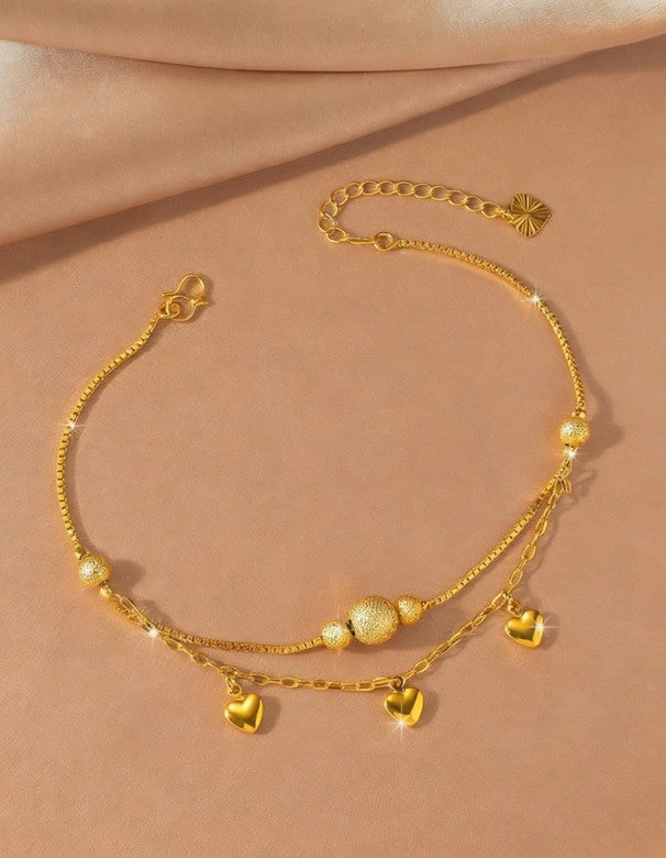 Sparkling Double Beaded Heart Shaped Anklet.
