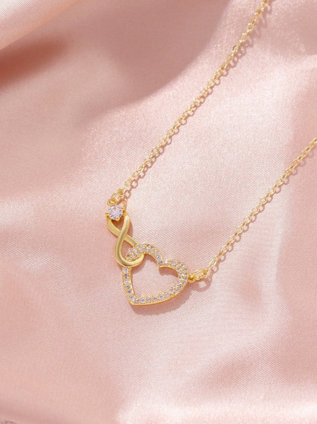 Sparkling Infinity & Heart Shaped Pendant Necklace