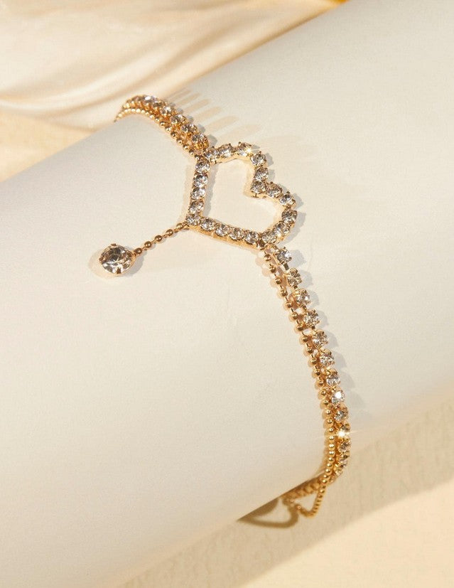 Sparkling Rhinestone Heart Anklet.
